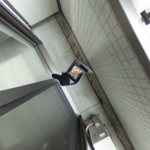 バルコニー付きの大きな窓(確度88%):掃き出し窓の先に手すりとタイル調のバルコニーが見える。室内は明るく、外気の取り込みや洗濯物干しが可能と推測。