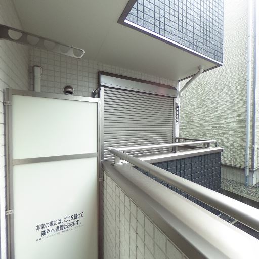 目隠しパネルの設置(確度77%):隣戸との境に半透明の目隠しパネルがあり、視線をある程度遮っている。