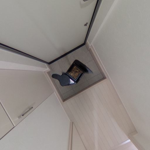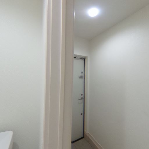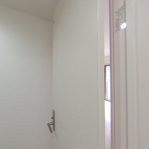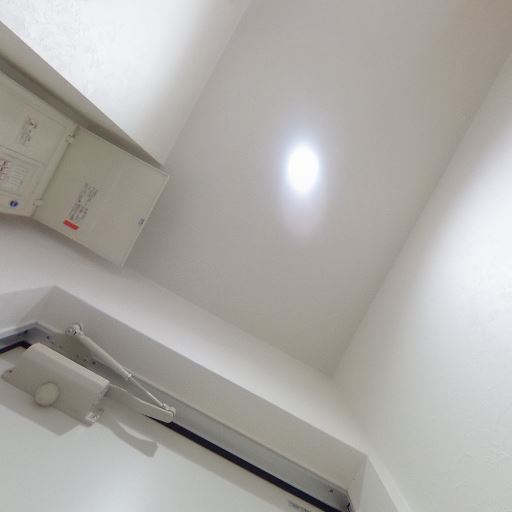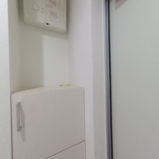 分電盤の位置(確度86%):玄関上部の壁に分電盤があり、室内から容易にアクセスできる。