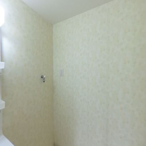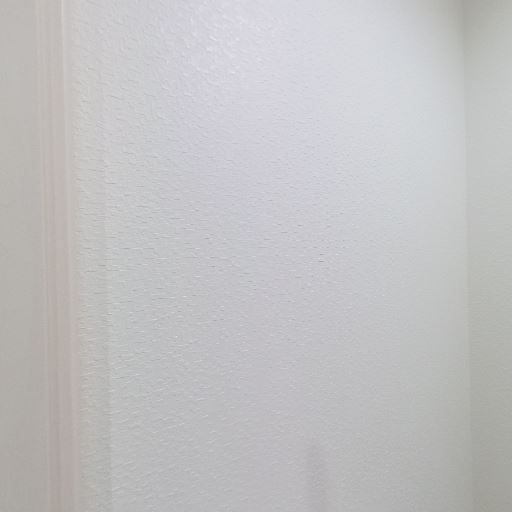 壁紙の状態は概ね良好(確度69%):大きな汚れや剥がれは見当たらず、淡色の柄クロスが貼られている。