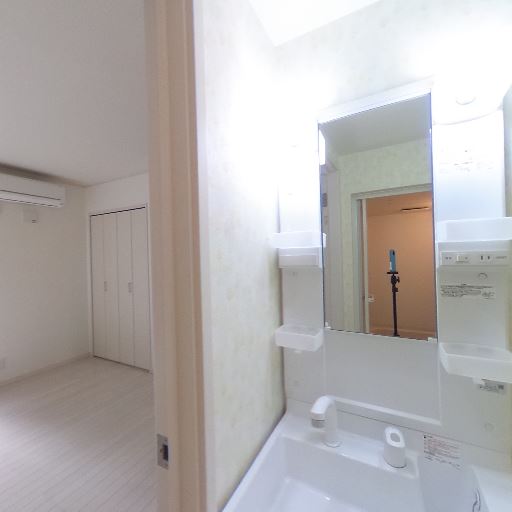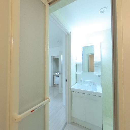 脱衣所と洗面台が隣接(確度86%):浴室扉の外に洗面化粧台があり、動線が短い。