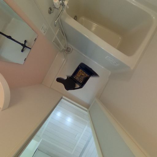 照明位置が一方向寄り(確度58%):天井照明がコーナー寄りで、浴槽側がやや暗く見える。
