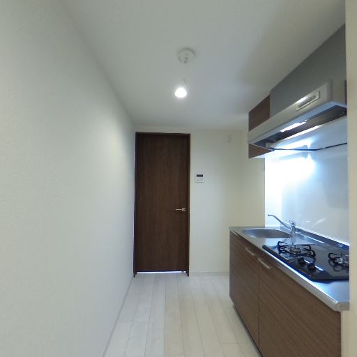 キッチン設備の充実(確度90%):2口ガスコンロとレンジフード、シンクが一直線に配置されたキッチンがある。ワークトップと収納も整っている。