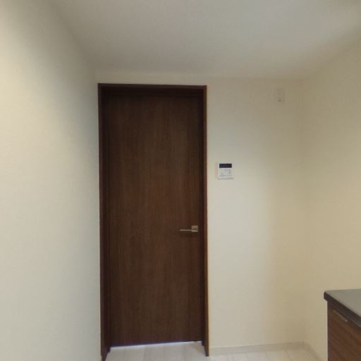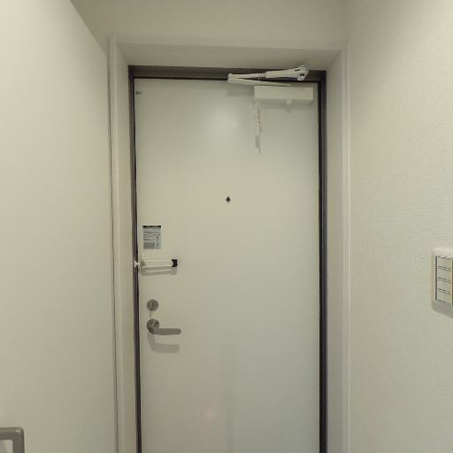 収納・下駄箱の存在(確度64%):玄関側に縦長の扉付き収納が見える。下部は玄関側、上部は室内側に向いた収納の可能性。