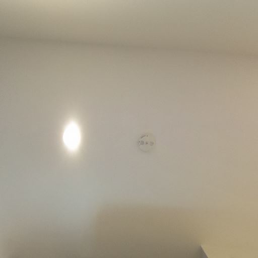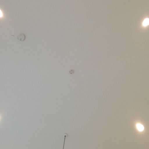 天井の火災警報器と照明の反射(確度64%):天井に火災警報器が設置され、壁に照明の反射が見える。