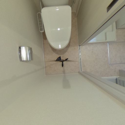 洗面室と近接配置(確度78%):トイレの外に洗面台・浴室が見えるため、水回りがまとまっている。