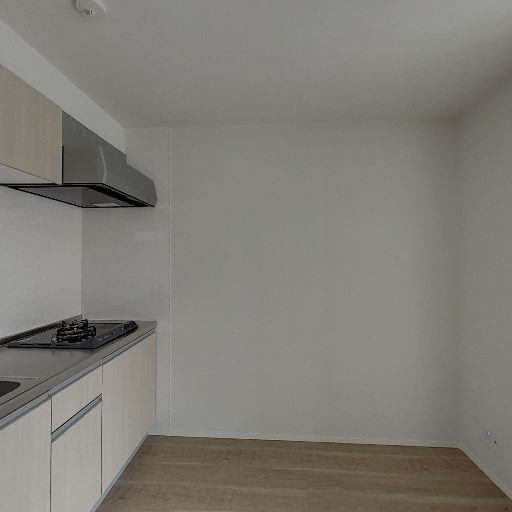 キッチンは単身向けサイズ(確度76%):2口コンロと小さめの流し台・吊戸棚が見える。