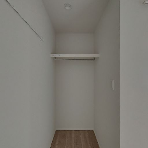ウォークインクローゼットがある(確度88%):奥行きのある収納スペースに枕棚とハンガーパイプが設置されている。