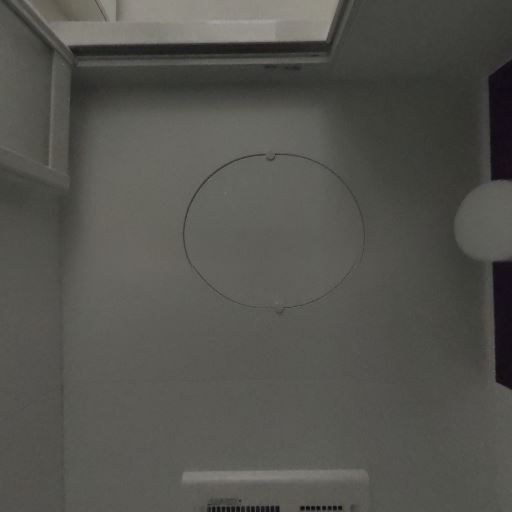 個室トイレの換気設備(確度80%):天井に換気口と小型の換気扇が見える。