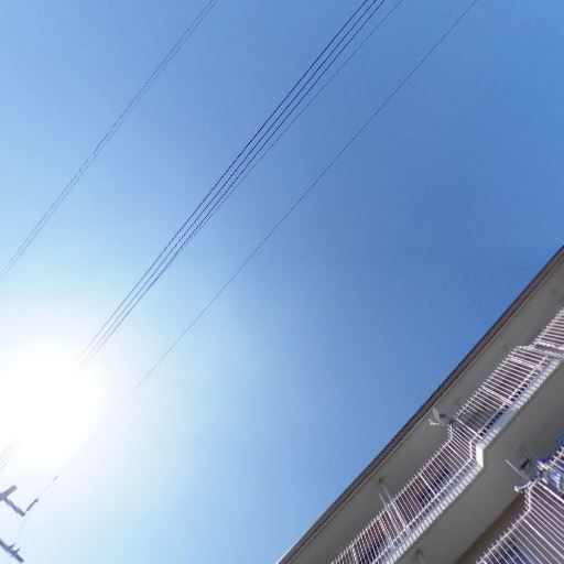 • 日当たり良好(確度86%):直射日光が強く、建物や通路、バルコニーが明るく照らされている。