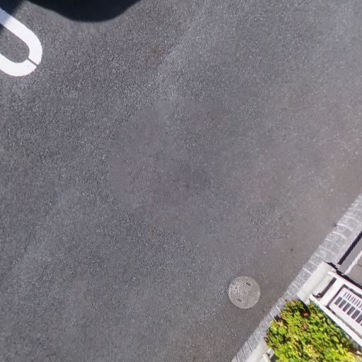 • 敷地内に平面駐車場あり(確度86%):区画線が引かれた平面駐車場と停車中の車が見える。電柱の近くにも区画がある。