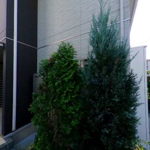 • 植栽が多く視界は緑豊か(確度82%):敷地境界や建物周りに背の高い樹木や低木が配置されている。