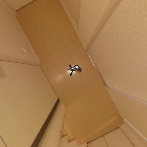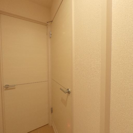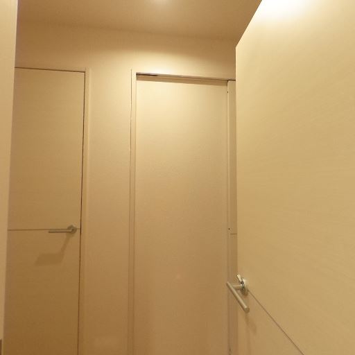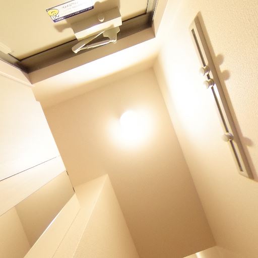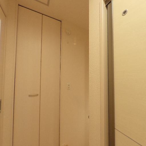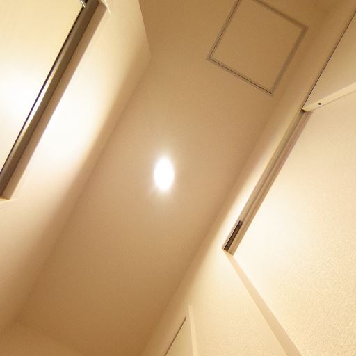 • 照明は天井ダウンライト(確度88%):天井中央に埋め込み型の照明があり、廊下全体を明るく照らしている。