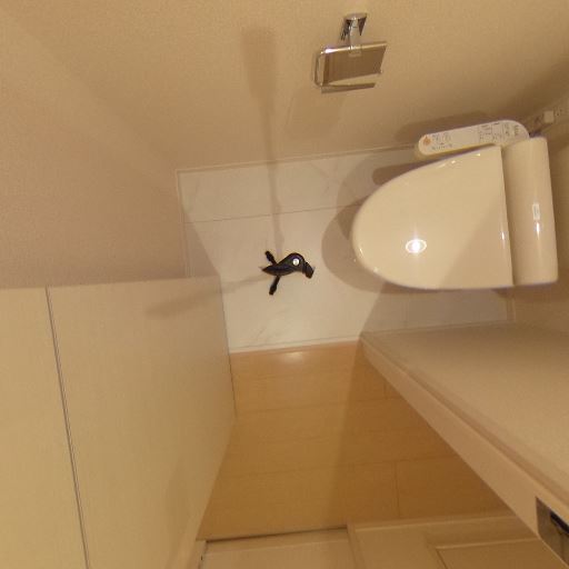 • トイレ収納が充実(確度86%):便器上部に吊戸棚があり、トイレットペーパーや掃除用品を収納できる。
