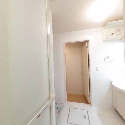 • 浴室乾燥・換気設備(確度82%):天井に換気扇が見え、洗面側にコントロールパネルも確認できる。