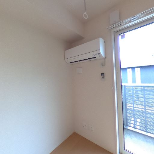 • エアコン設置済み(確度95%):壁掛けエアコンが窓横に設置されている。