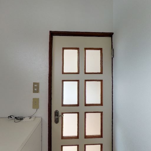 • 室内扉は採光ガラス付き(確度80%):玄関から室内へ続く扉にガラス小窓が複数あり、光を通す。