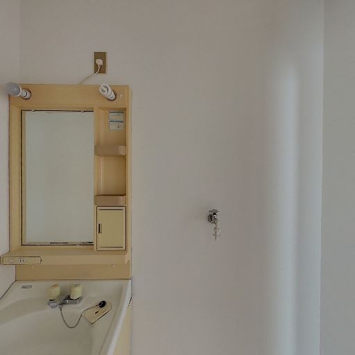 • 独立洗面台あり(確度86%):鏡・収納付きの洗面化粧台が設置されている。