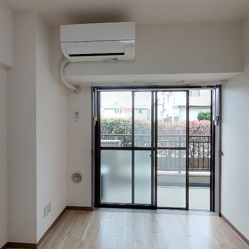 • 窓とエアコンがあり基本設備は揃っている(確度90%):掃き出し窓と壁付けエアコンが確認でき、換気や採光、冷暖房の基本条件は満たしていると見られる。