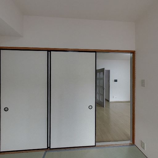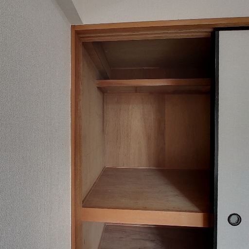 • 押入れ収納がある(確度94%):木製の押入れが備え付けられており、中段と上部棚が見えるため、布団や日用品を分けて収納しやすそうである。