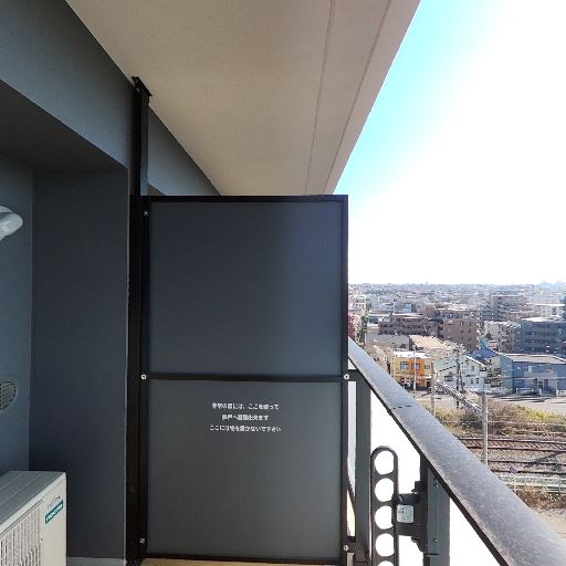 • バルコニー設備(確度77%):物干し金物・屋根(ポリカ波板のような庇)・仕切り板・室外機スペースがある。
