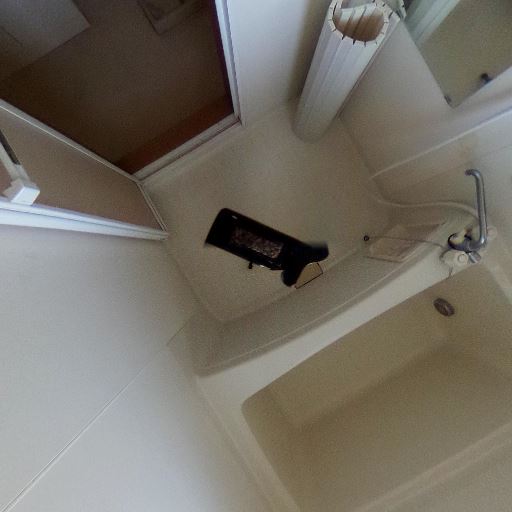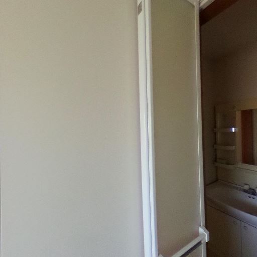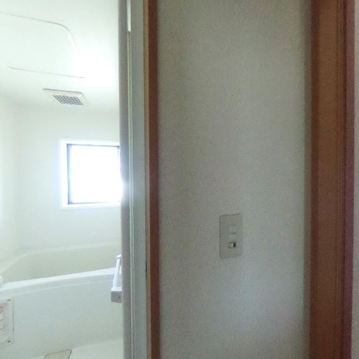 洗面室と浴室が近く動線が良い(確度90%):浴室出入口のすぐ外に洗面台が見えており、一般的な洗面脱衣室一体型の配置と考えられる。入浴前後の動線はスムーズそう。