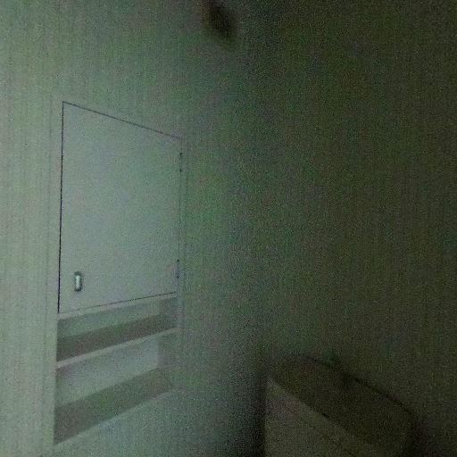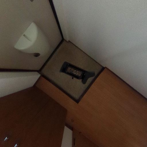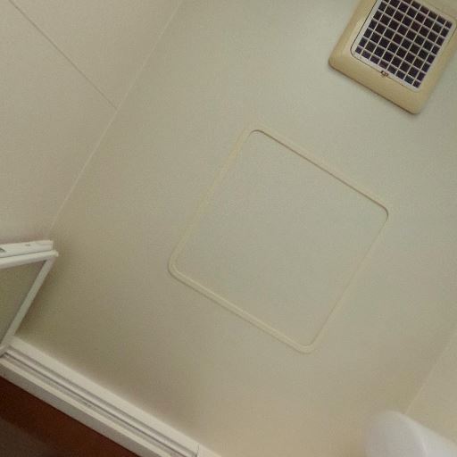 トイレ上部に収納棚がある(確度90%):壁面に埋め込み型または浅型の収納棚が設置されており、トイレットペーパーや掃除用品の保管に使えそうです。