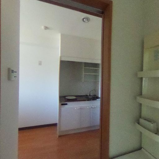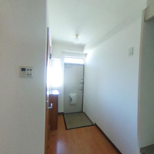 キッチンと洗面スペースが近い(確度78%):出入口越しにすぐキッチンが見えており、水回りが比較的まとまった間取りと推測できる。