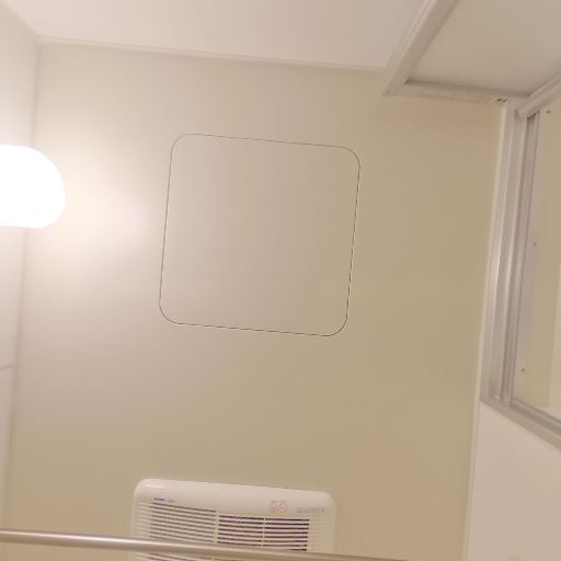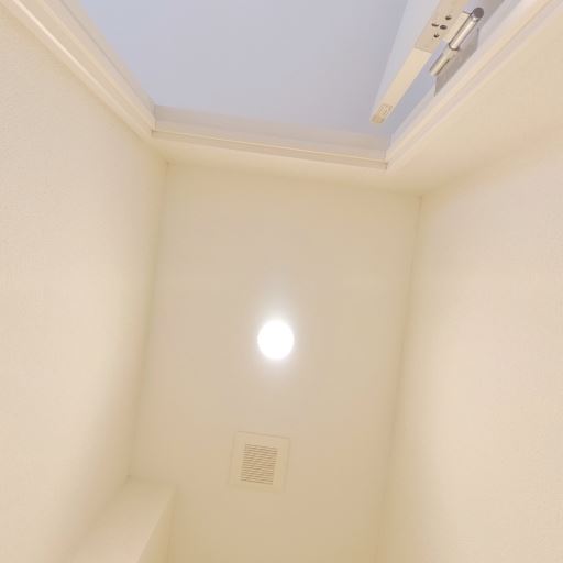 • 換気設備と天井照明がある(確度91%):天井に換気口とダウンライトが見え、トイレとして必要な換気・照明設備は備わっている。