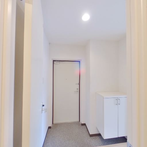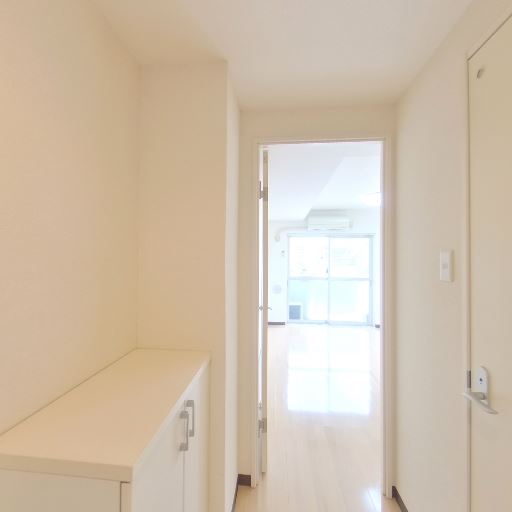 • 全体的に白基調で清潔感がある(確度80%):壁・天井・建具が明るい色で統一されており、玄関から廊下にかけて清潔感のある印象を受ける。