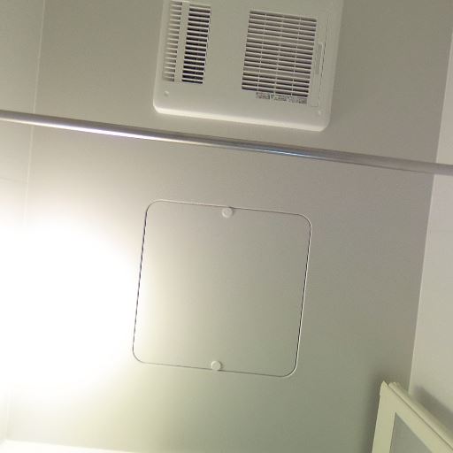• 浴室乾燥や換気に使えそうな設備がある(確度84%):天井面に換気口らしき設備があり、さらに壁上部にランドリーパイプも見えるため、浴室内干しや換気機能を期待できる。