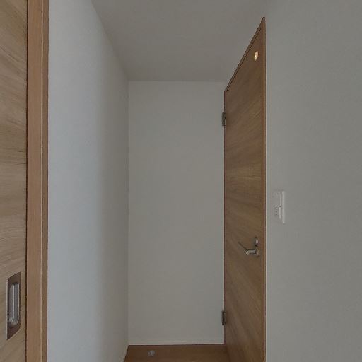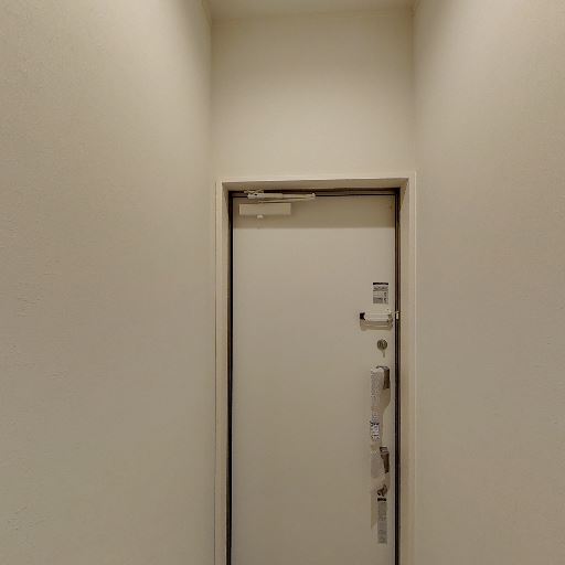 スイッチ位置と壁面の状態(確度66%):廊下の壁にスイッチがあり操作しやすそう。壁面は概ねきれいで大きな傷や汚れは見当たらない。
