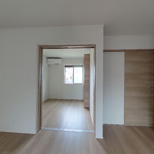 リビングと続き間(確度82%):引き戸でリビングとつながる間取り。開けると奥まで抜け感がある。