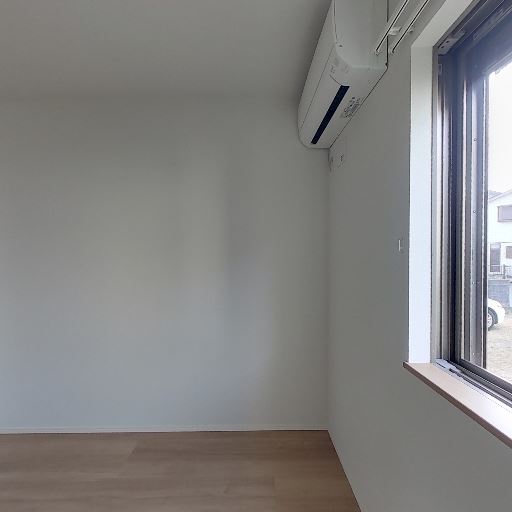 エアコン設置済み(確度84%):室内上部にエアコン本体が見える。