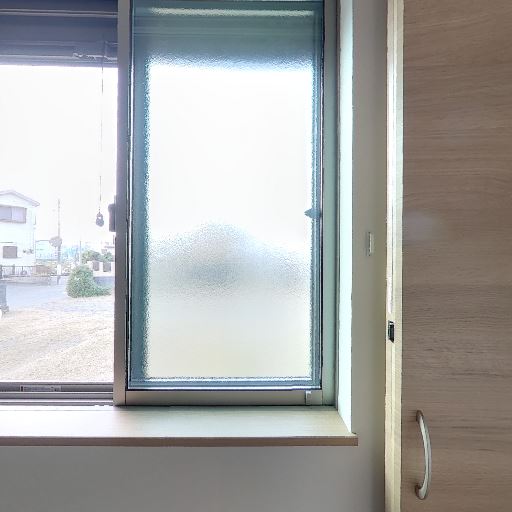 採光は十分、片側は型板ガラスでプライバシー配慮(確度77%):窓から明るさが入っており、片方の窓は不透明ガラスで視線を遮る。