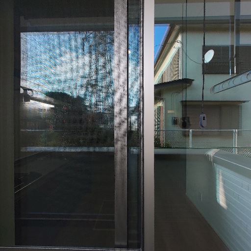 網戸・サッシの状態(確度68%):引き違い窓と網戸が確認できる。枠や網に目立つ破れ・歪みは見当たらない。