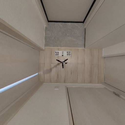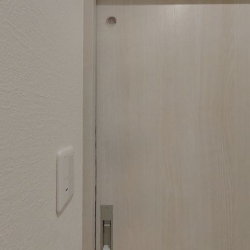 採光は限定的だが暗すぎる印象はない(確度79%):外に面した大きな窓は見えず、左画像のドア脇の細い採光部と天井照明が主な明るさ源に見える。自然光は強くなさそうだが、室内照明で一定の明るさは確保されている。