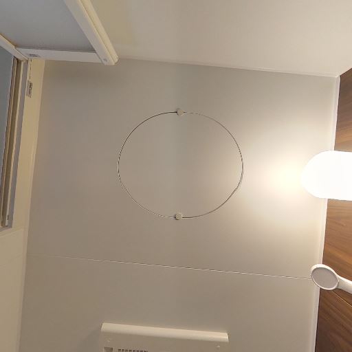 室内物干し用と思われる設備がある(確度72%):top画像の壁面中央付近に丸い受け金具のような部材が見え、室内干し用ポール受け等の設備である可能性が高い。