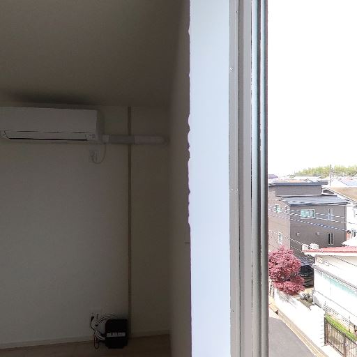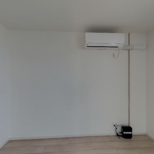 エアコン設置済み(確度96%):主室の上部壁面にエアコンが確認でき、入居後すぐに空調を使える状態と考えられる。
