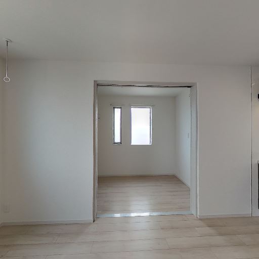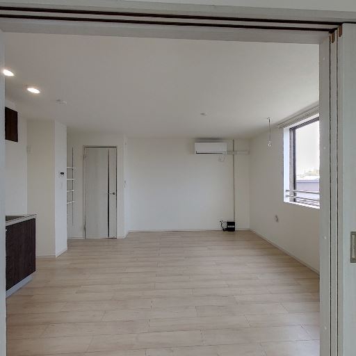 LDK側は広さにゆとりがある(確度87%):開口越しに見える居室空間は床面が広く、窓側まで抜け感がある。大きめの家具を置いても一定の動線を確保しやすそうである。