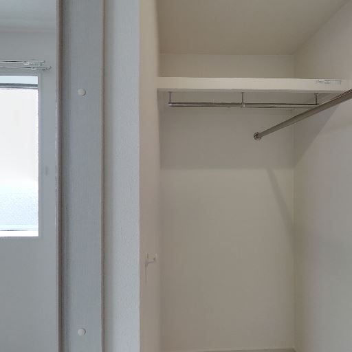 収納付きで居室を広く使いやすい(確度82%):引き戸タイプのクローゼットが見え、荷物を室内にまとめやすそうである。