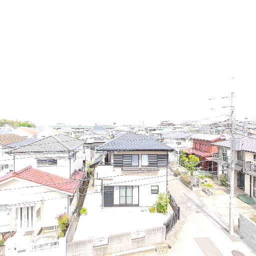 眺望と抜け感がある(確度87%):窓の外は隣家が極端に迫っておらず、住宅街の景色が広がって見える。圧迫感は比較的少ないと考えられる。
