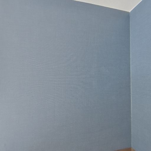 アクセントクロス(確度90%):一面がブルー系の壁紙で他は白壁。