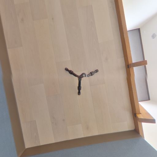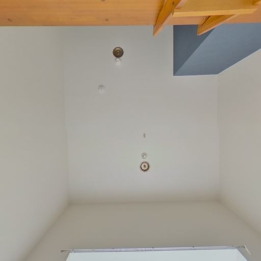 ロフト・小上がり空間(確度86%):低い天井と手すり、はしごの取付金具が床中央にあり、ロフトまたは小上がりのスペースと推測される。