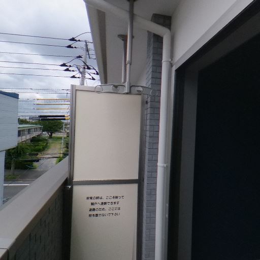 • 設備と注意喚起表示(確度80%):給湯器ボックスと注意書きパネルが設置されている。