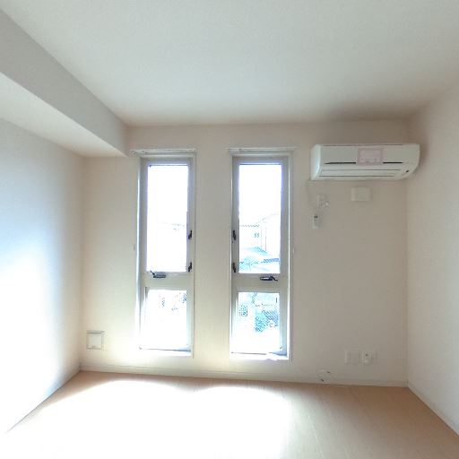 • エアコン設置済み(確度92%):窓の右上にエアコン本体が設置されている。