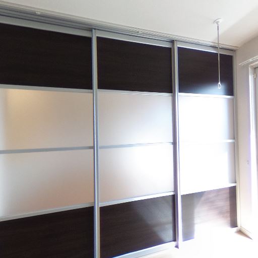 • 間仕切りスライドドア(確度74%):木目×すりガラスタイプの3枚引き戸があり、空間を仕切れる。