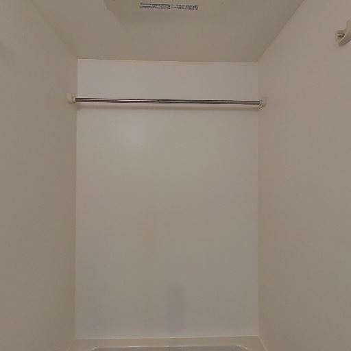 クローゼット収納あり(確度86%):開き戸のクローゼットがあり、上段棚とハンガーパイプで衣類を掛けられる。