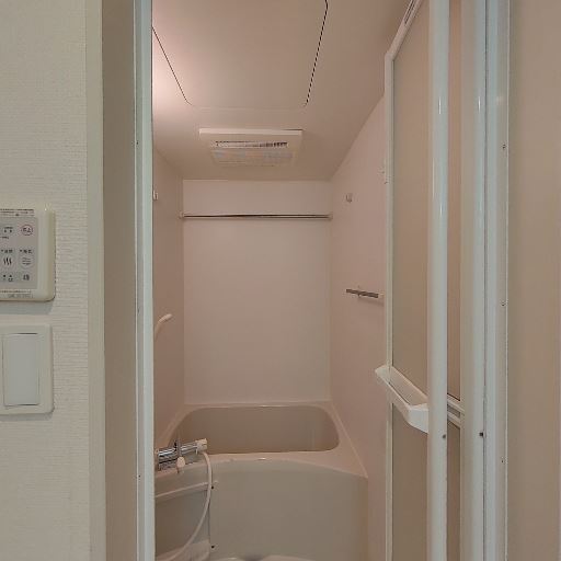 浴室乾燥機付きのバスルーム(確度82%):ユニットバス上部に浴室乾燥・換気の操作パネルと換気口が確認できる。