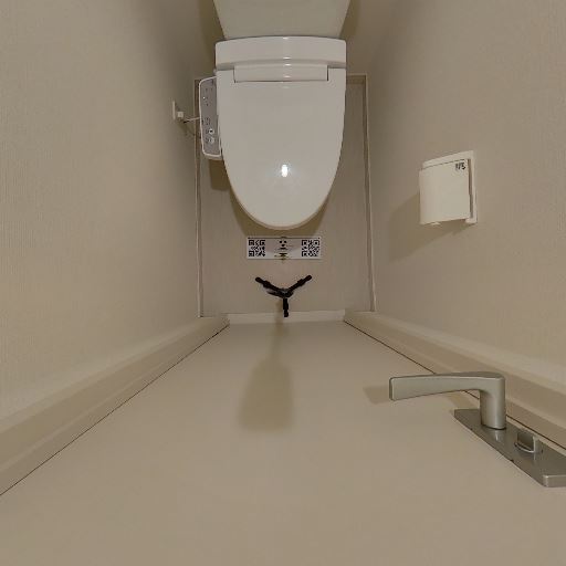 温水洗浄便座付き(確度88%):便座右側に操作パネルが見え、温水洗浄機能付きと判断できる。